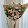 Этот утонченный букет окутывает сердце нежностью и любовью. Каждая розовая роза, оттененная теплом, передаст вам свои притягательные чары, заставляя забыть о суете и погрузиться в мир чувств. Приглушенная крафтовая упаковка придает букету естественный шарм, а узелок из зеленой декоративной листвы добавляет свежести и озаряет цветочную композицию. Демонстрируя нежность и утонченность, этот букет станет олицетворением вашей заботы и привлечет внимание своей простотой и красотой.